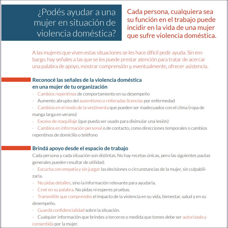 Cada persona, cualquiera sea su función en el trabajo, puede incidir en la vida de una mujer que sufre violencia doméstica.